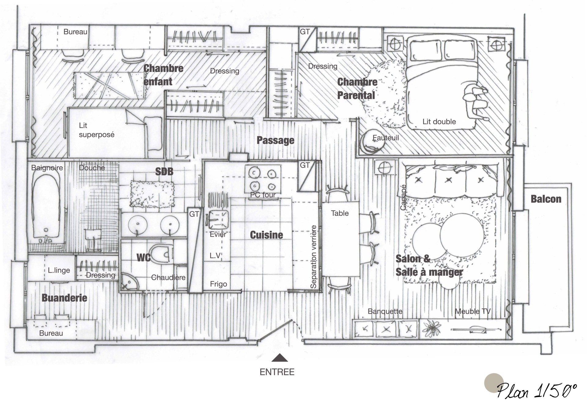 • Repenser l’implantation des pièces• Créer des volumes plus ouverts• Intégrer du rangement sur mesure• Fournir des plans et 3D pour aider à la projection