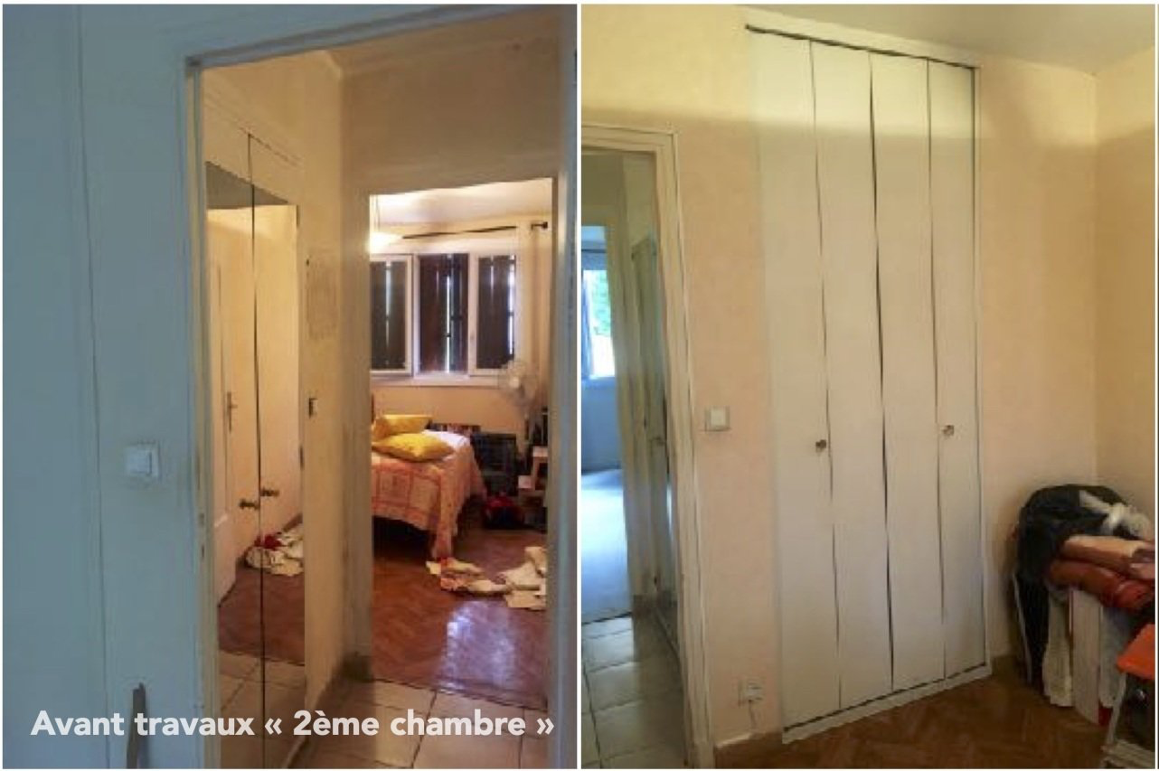 L’appartement, très cloisonné à l’origine, offrait peu de lumière et de rangement. Il a fallu repenser les volumes, créer un espace jour spacieux et fluide, intégrer une cuisine sans fenêtre (avec verrière pour faire circuler la lumière), conserver deux chambres séparées, et optimiser chaque mètre carré pour répondre aux besoins d’une famille de quatre. Le tout dans un style sobre, moderne et chaleureux.