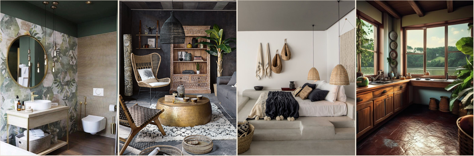 Idéal pour insuffler un vent d’évasion, de chaleur et de dépaysement, le style exotique invite au voyage. Il évoque les paysages tropicaux, les cultures lointaines et la nature luxuriante. Ce style est parfait si tu veux un intérieur vibrant, chaleureux et vivant, tout en cultivant une ambiance dépaysante et solaire.