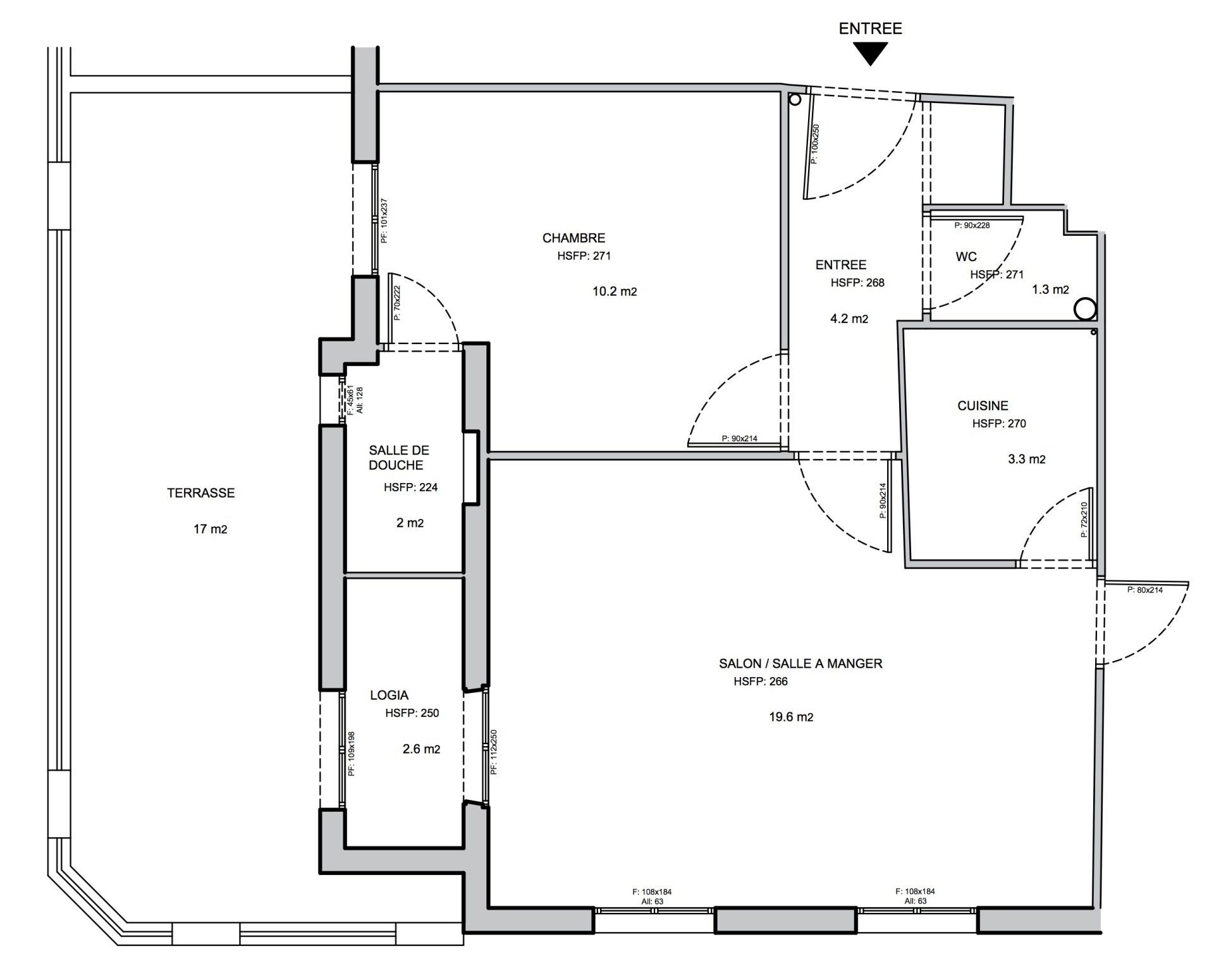 Ma mission a consisté à repenser complètement la distribution des espaces : • Fermeture d’une ouverture vers un second appartement pour recréer deux lots indépendants. • Création d’une cuisine ouverte sur le salon avec un coin repas. • Agrandissement de la salle de douche pour optimiser le confort. • Transformation de la loggia en bibliothèque sur mesure, tout en conservant l’accès à la terrasse de 17 m². • Aménagement d’une buanderie dans l’espace de l’ancienne cuisine, devenue trop exiguë.