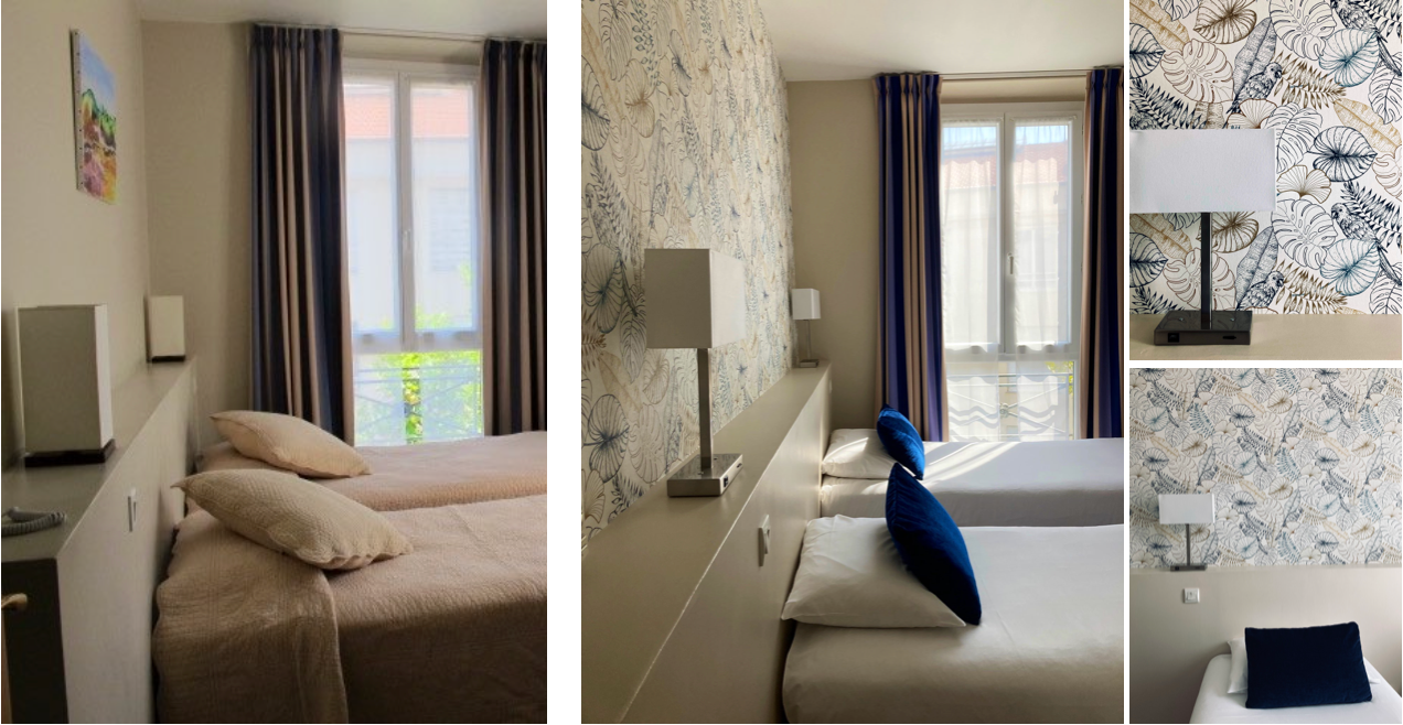 Les propriétaires de l’hôtel Le Havre bleu souhaitaient relooker les espaces communs ainsi que certaines chambres jugées trop froides et impersonnelles.Mon rôle a été d’insuffler une atmosphère plus accueillante et chaleureuse, en valorisant les volumes et en personnalisant les ambiances.