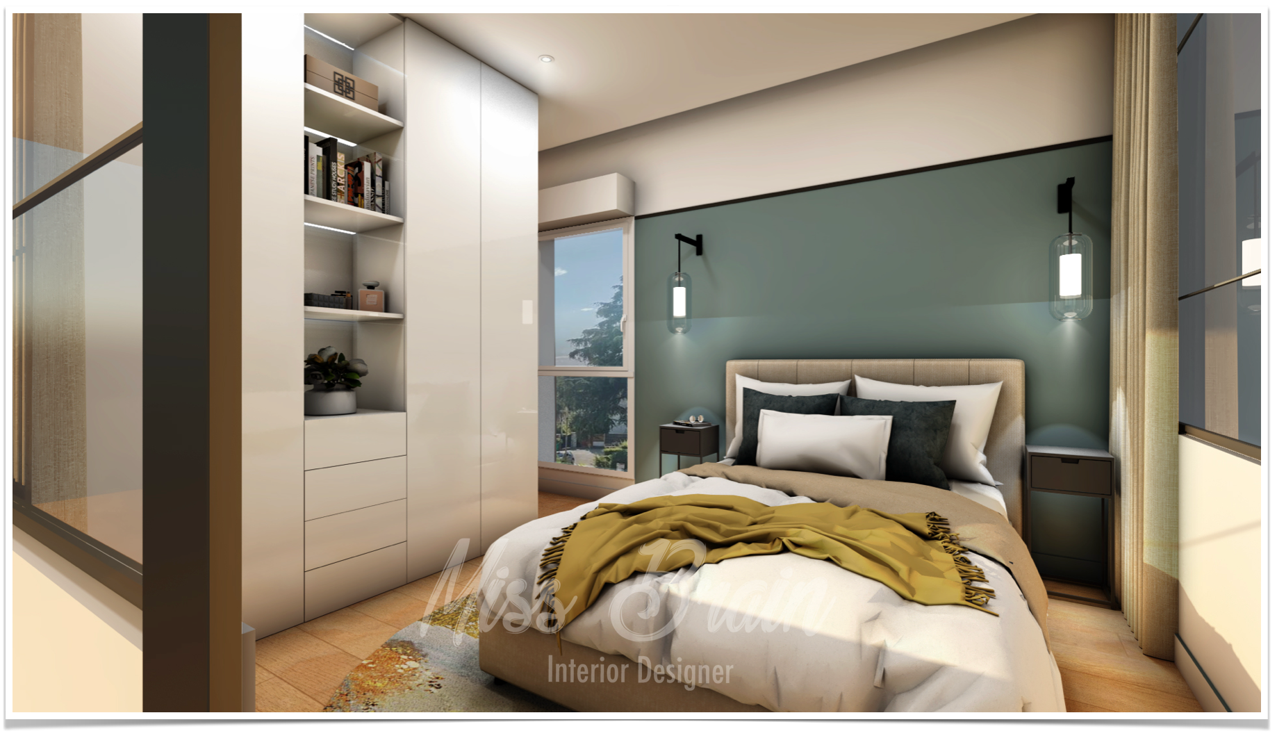 Dans le cadre de la vente de son appartement, une cliente s’est tournée vers moi pour valoriser un espace atypique : une verrière faisant office de second salon. À la demande de l’agence immobilière, j’ai réalisé une projection 3D transformant cet espace en chambre, afin de permettre aux acheteurs potentiels de mieux s’y projeter.
